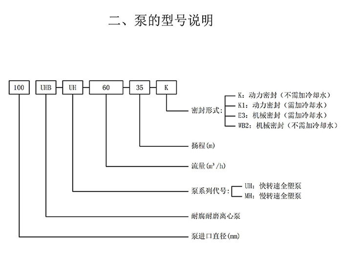 UHB-UH/MH 系列属单级悬臂式离心泵,过流部件采用超高分子量聚乙烯(UHMWPE)。