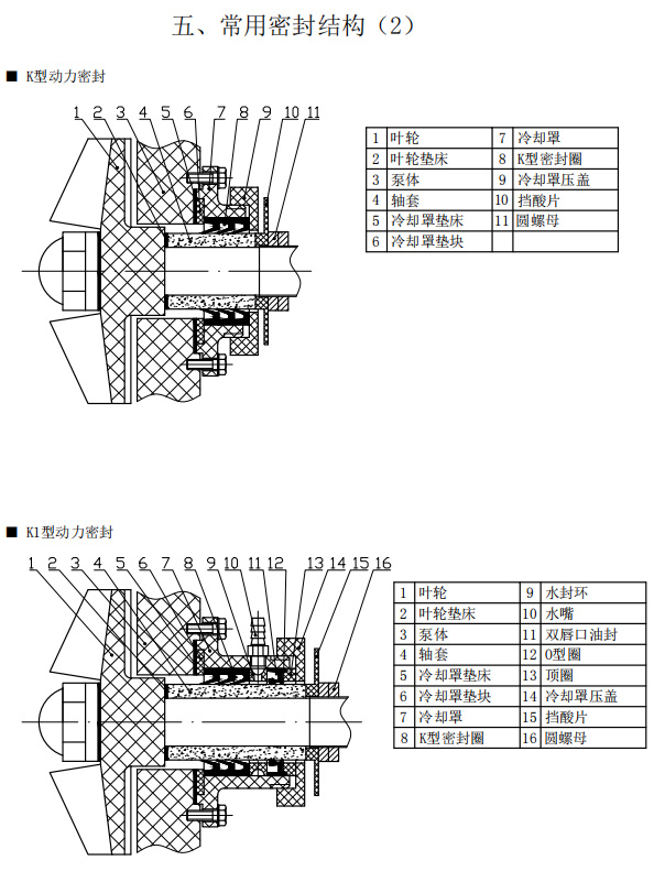 (10)K1 型动力密封、E3 型机械密封必须接洁净冷却水,冷却水压力为0.5~1.0kg/cm,水量 50~80kg/h.