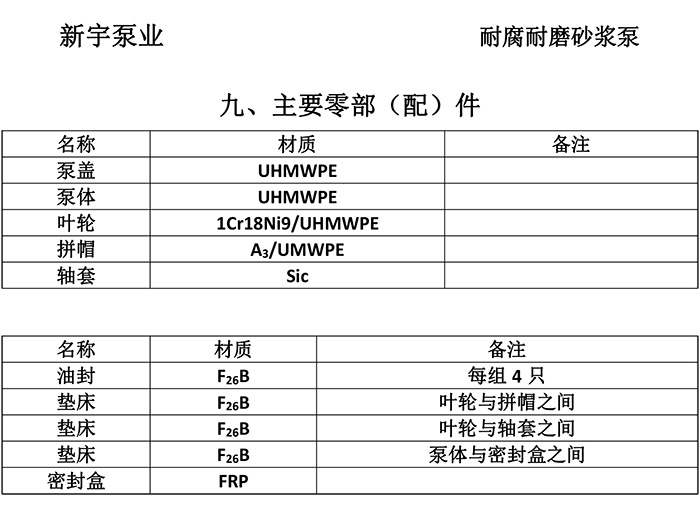 (1)过流部件为超高分子量聚乙烯,塑料层厚 20-50mm。